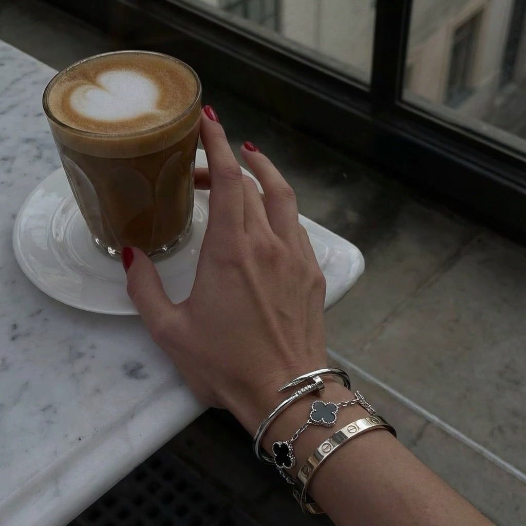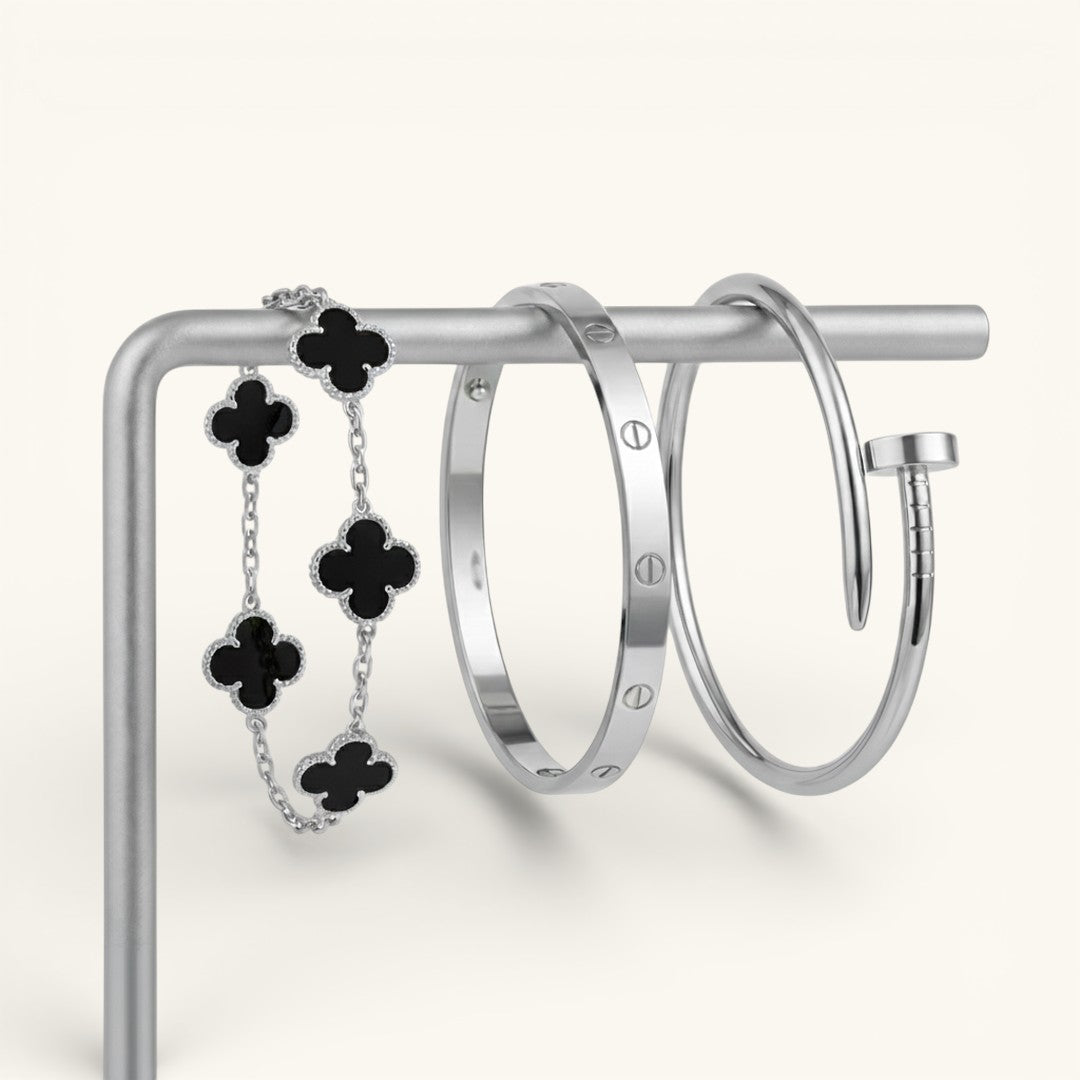 • Elegance Nail Bracelet: A bold and modern statement piece with a sleek nail-inspired design (one size).