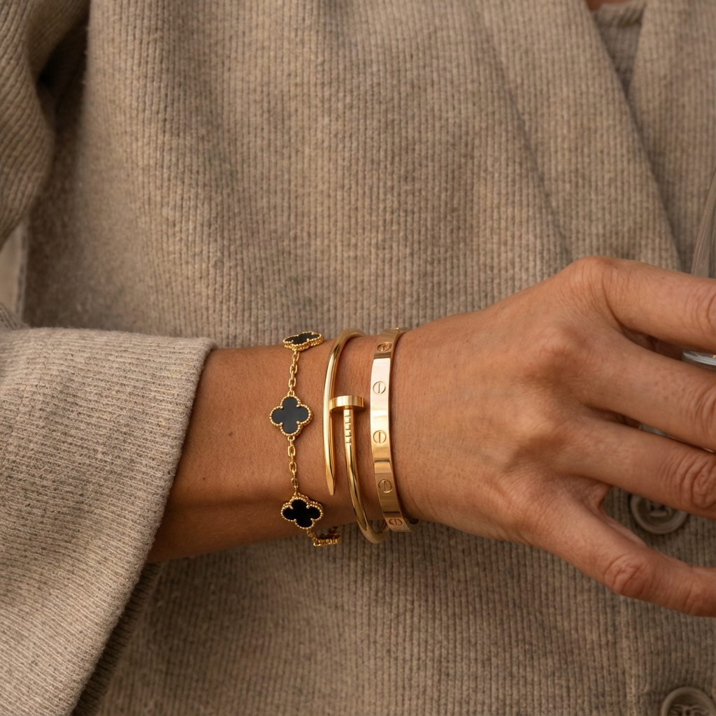 18k gold plating on surgical steel. Engineered to stay brilliant, always.