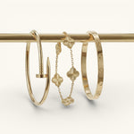 • Trinity & Clover Bracelet: A delicate and adjustable bracelet (16+5 cm) with charming details, available in gold or silver.